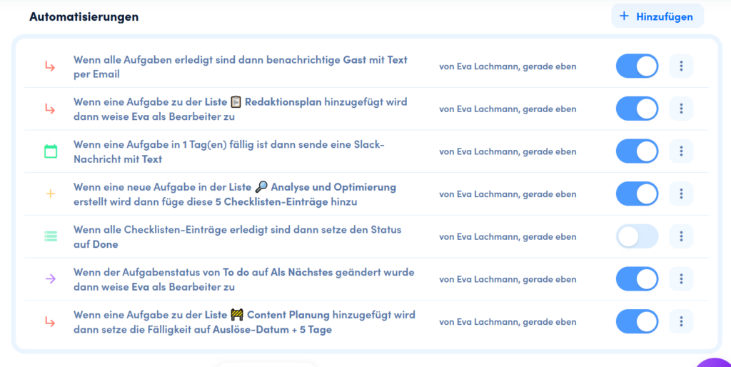 Die einfachste Art der Automatisierung findet oft direkt dort statt, wo deine Arbeit lebt: In deinem Workmanagement-Tool. Tools wie awork bieten native Automatisierungen, die ohne eine Zeile Code funktionieren.